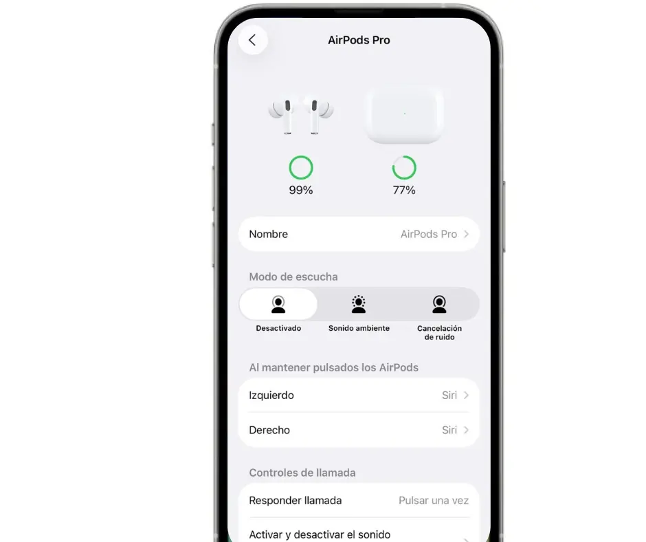 - Los AirPods Pro 2 ofrecen un audio nítido, potente y equilibrado. Cada detalle se escucha con claridad: graves profundos, voces limpias y un sonido envolvente que te hace sentir dentro de la música